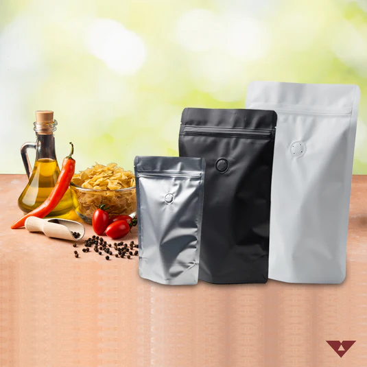 Stand Up Pouches with Reseal Zip and Valve